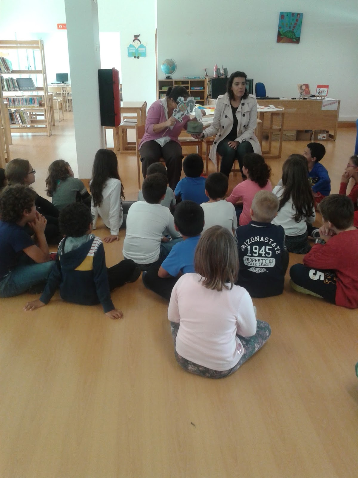 Hoje, as turmas do primeiro ciclo 2º A e 2ºB e a turma do jardim de Infância sala 1, vieram à nossa biblioteca ouvir a história : " A Bruxa Mimi no Inverno", de Valerie Thomas e Korky Paul dinamizada pela Professora